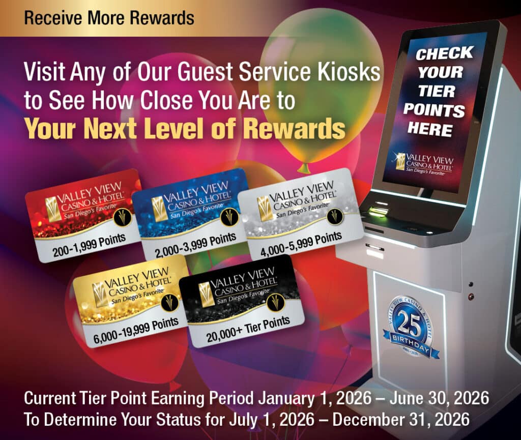 Any of Our Guest Service KiosksLos quioscos de servicio al cliente de Valley View Casino & Hotel están repartidos por todo el casino y ofrecen todo lo que necesitas para sacar el máximo partido a […]